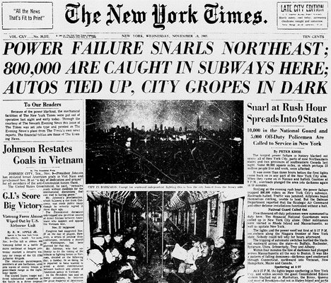 He was in Montreal, doing an interview with Stan Brooks of WINS over the phone, who described the Empire State Building in the dark. He says Brooks told his friend, Peter Kiss, a New York Times correspondent, that “this kid in Montreal has some information on the blackout.”